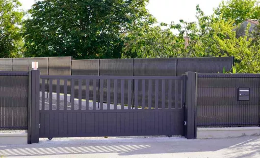L’automatisme coulissant s’adapte aux installations latérales, en particulier sur des portails glissant le long d’un rail. Il convient aux configurations où l’espace de dégagement arrière est limité.